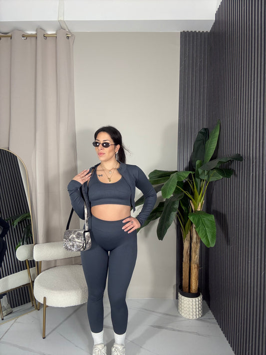 Coordinato 3 pezzi costine grigio