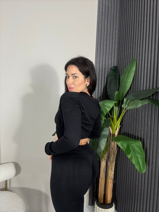 Coordinato 3 pezzi costine nero
