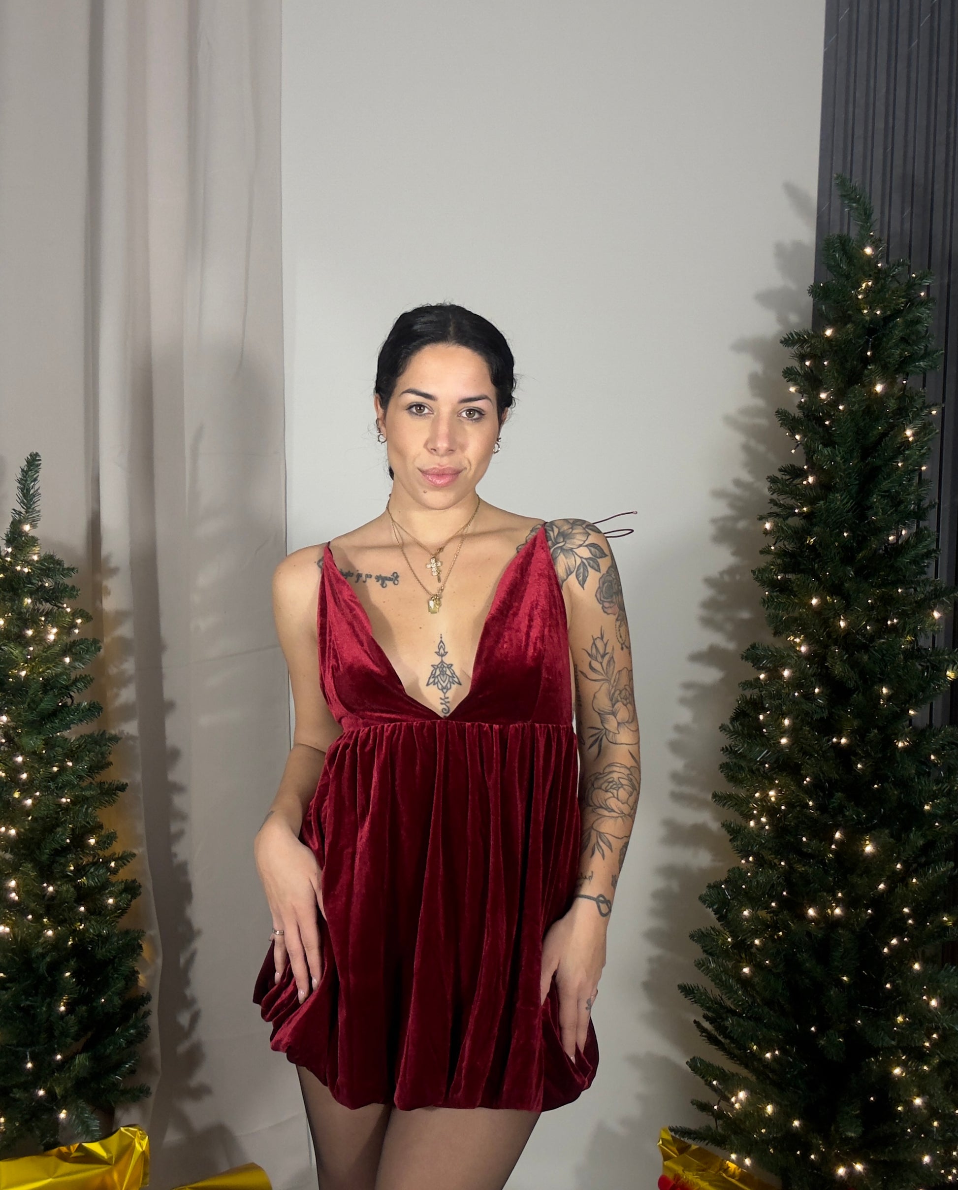 Abito a palloncino in velluto . Le bretelle e sono regolabili.