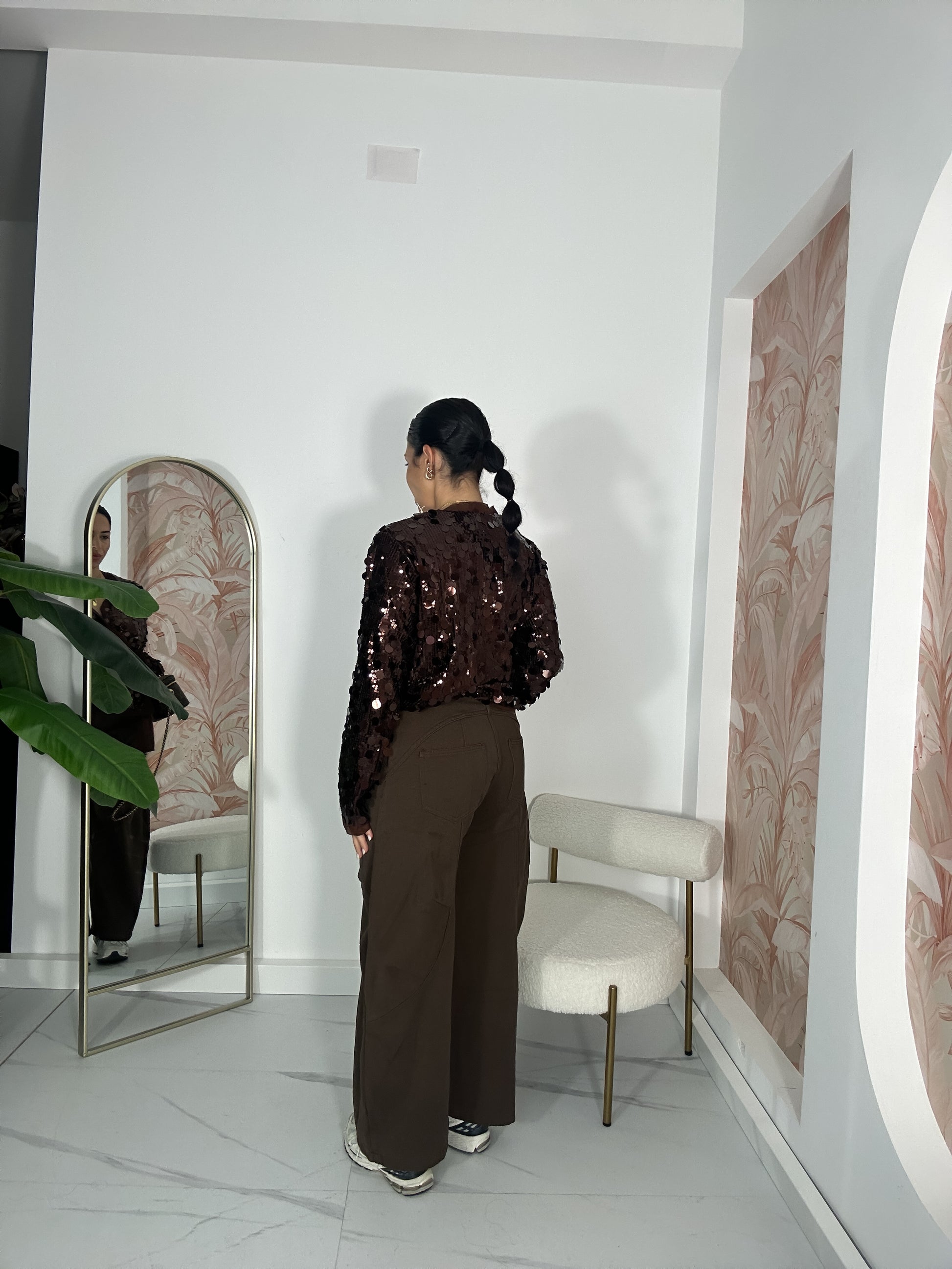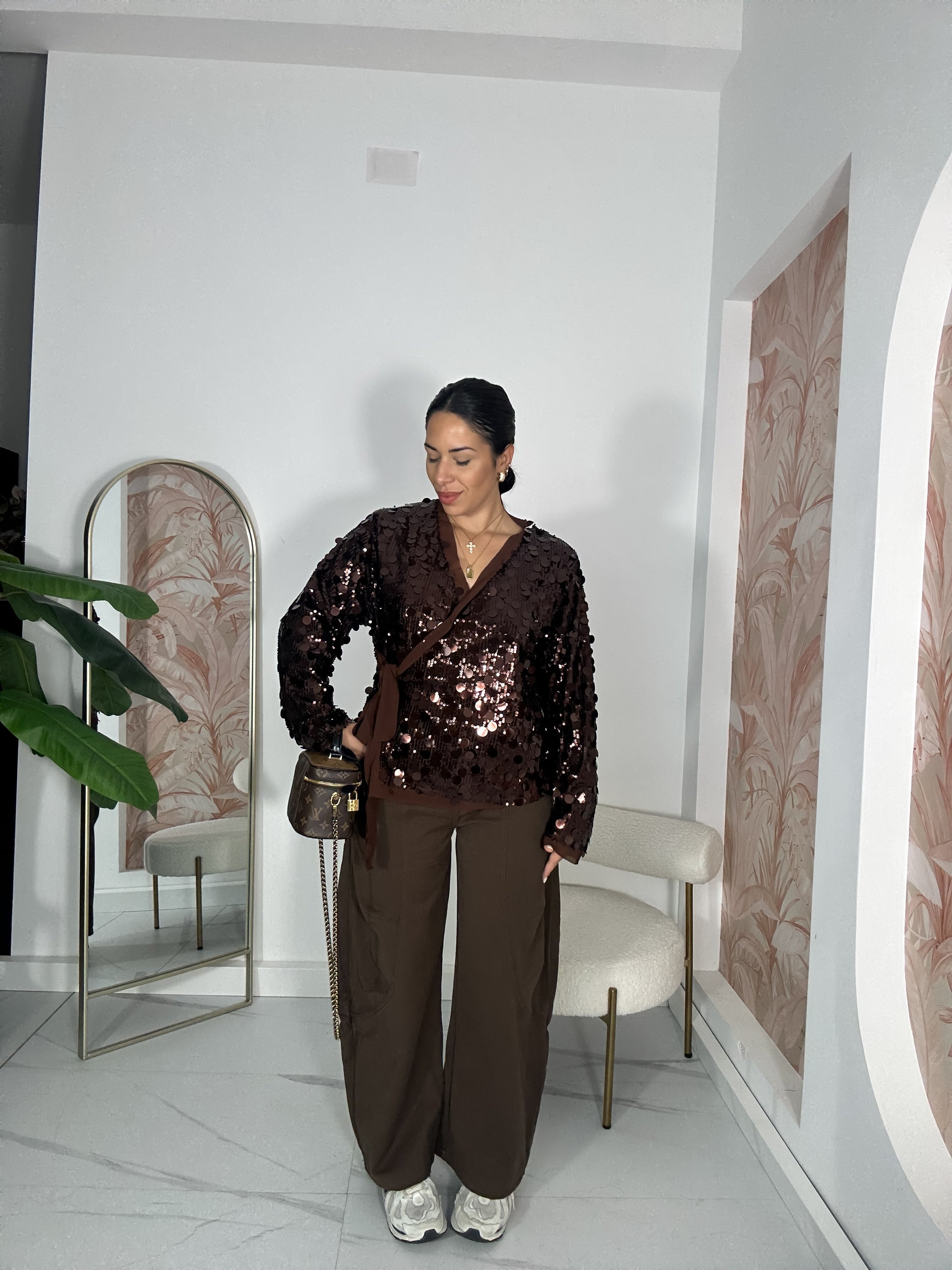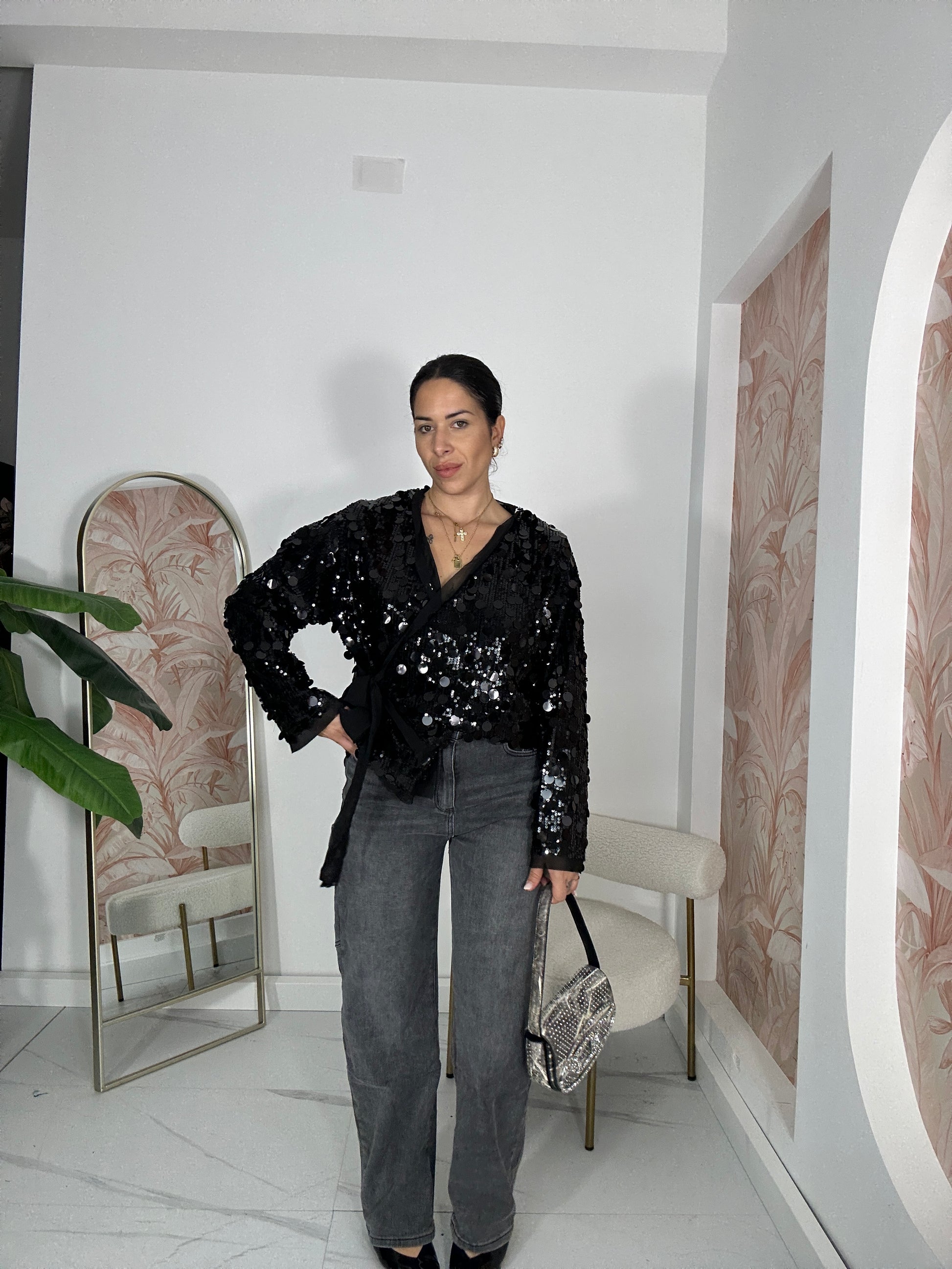 Camicia modello portafoglio in taglia unica con paillette.