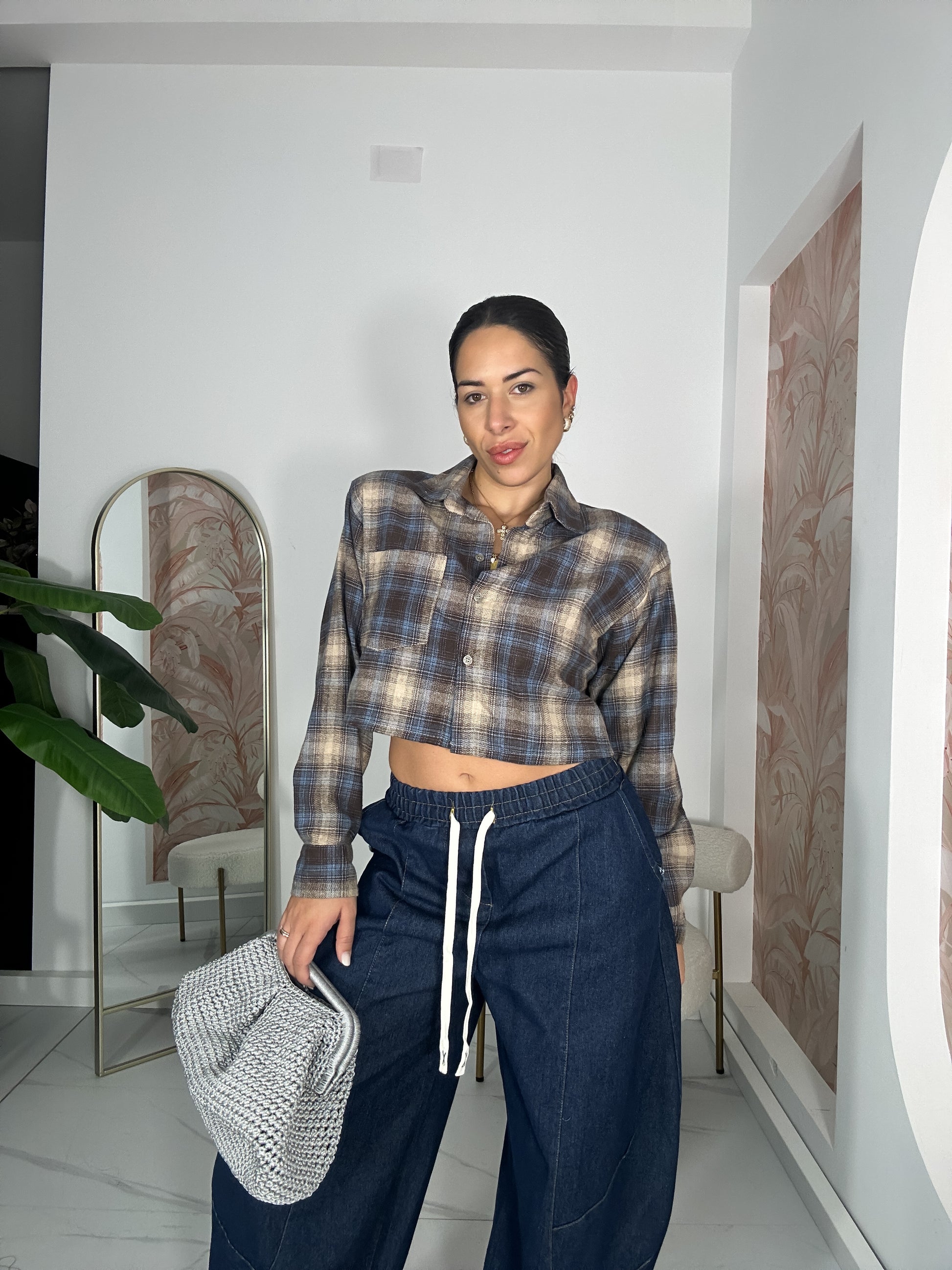 Jeans a gamba larga in taglia unica, realizzato in denim dal taglio moderno e disinvolto. La vita elasticizzata con coulisse regolabile garantisce comfort e adattabilità, mentre le cuciture a vista e il fit oversize donano un tocco contemporaneo e street. Perfetto da abbinare a camicie o body per un look casual-chic dal carattere deciso.