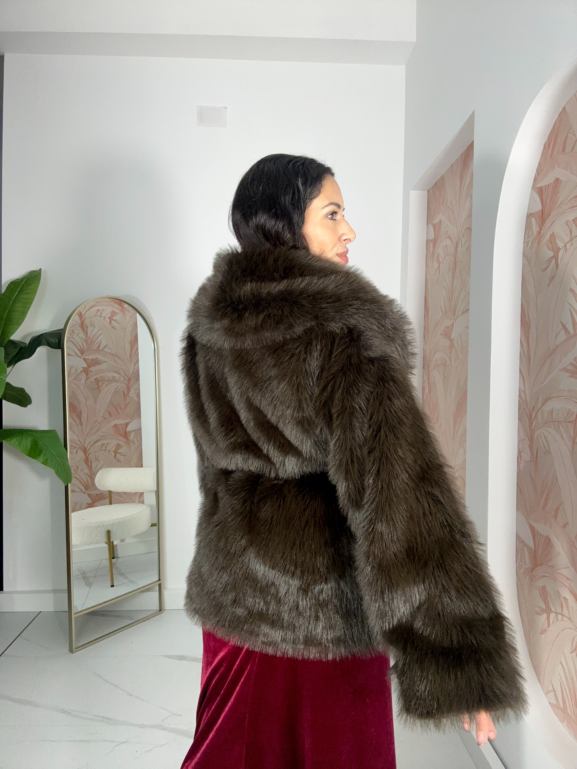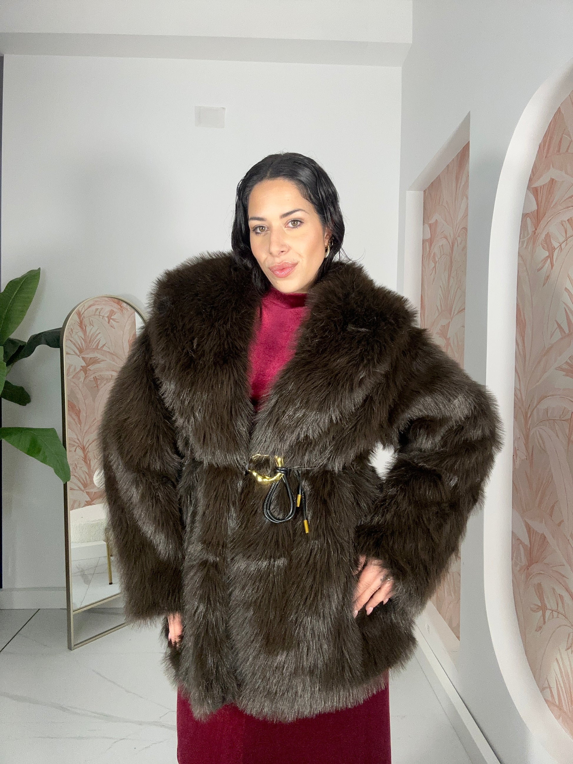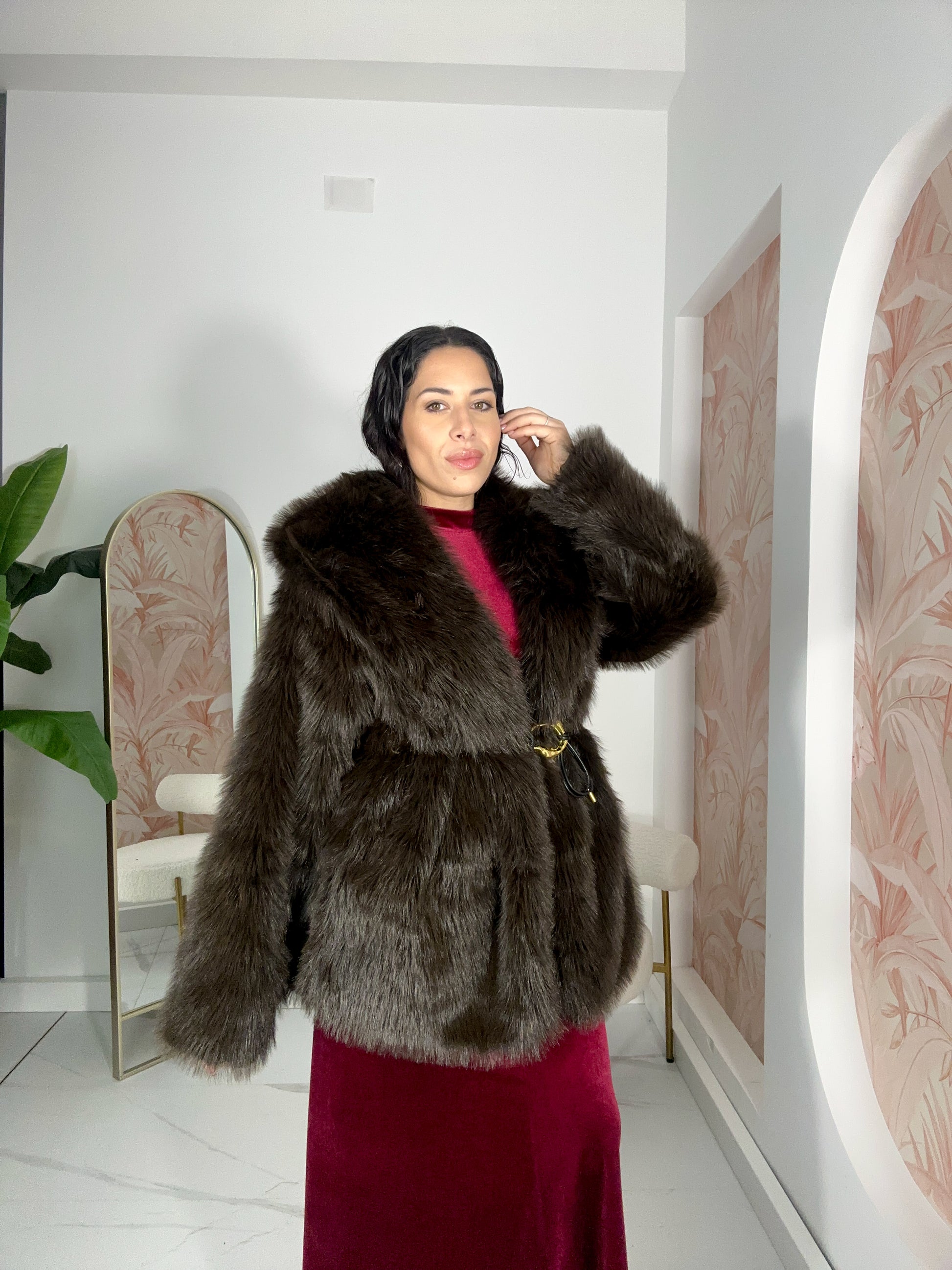 Pelliccia Marrone Taglia Unica con Cinta in Vita