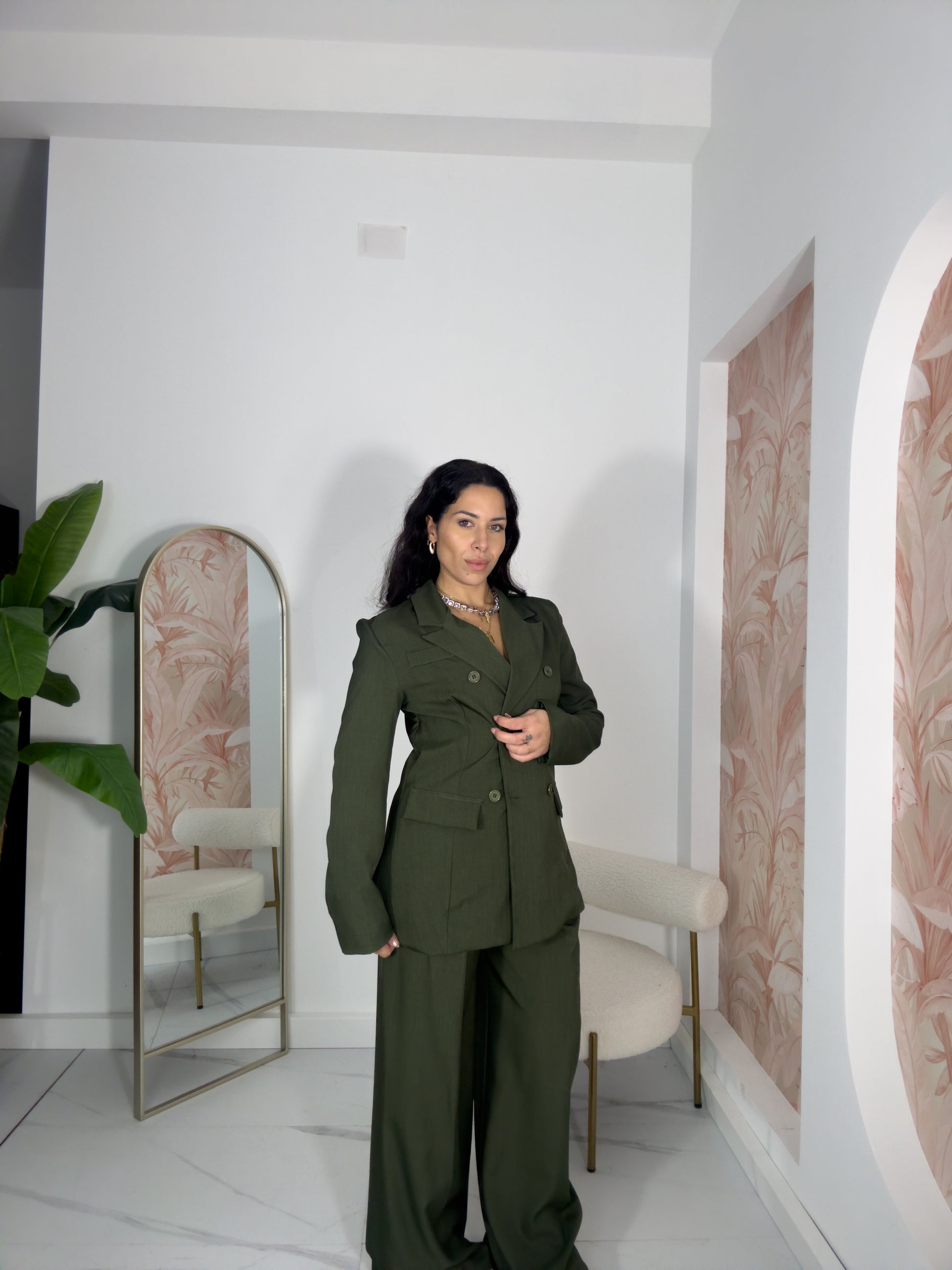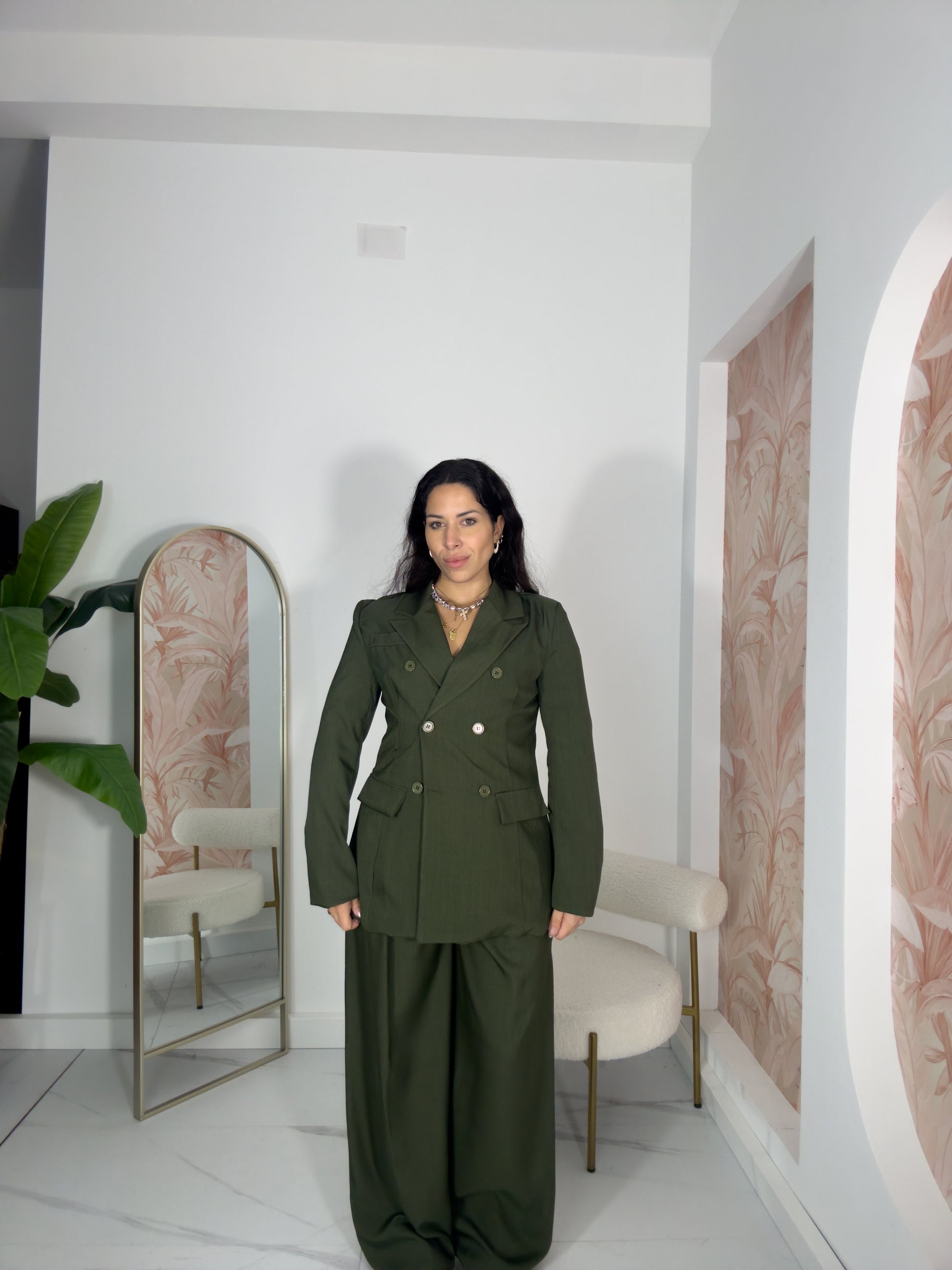 Tailleur con blazer doppiopetto e pantalone palazzo con elastico sul retro in Taglia unica.