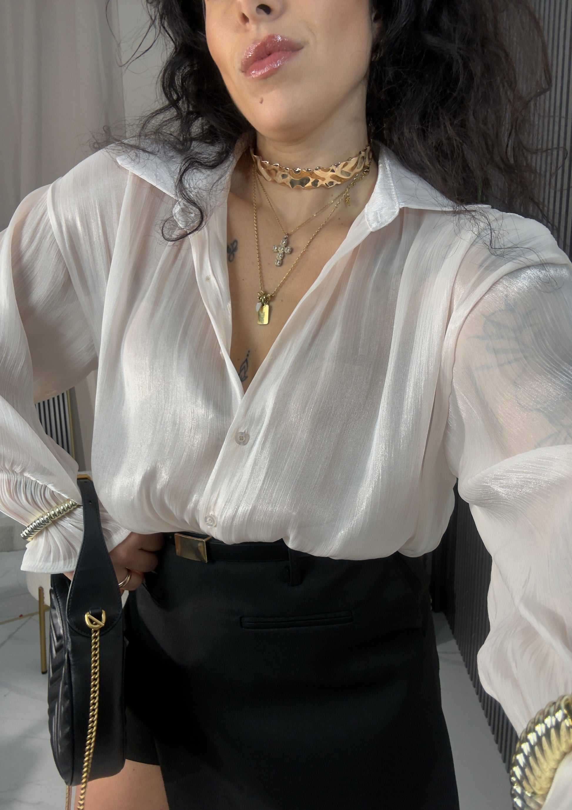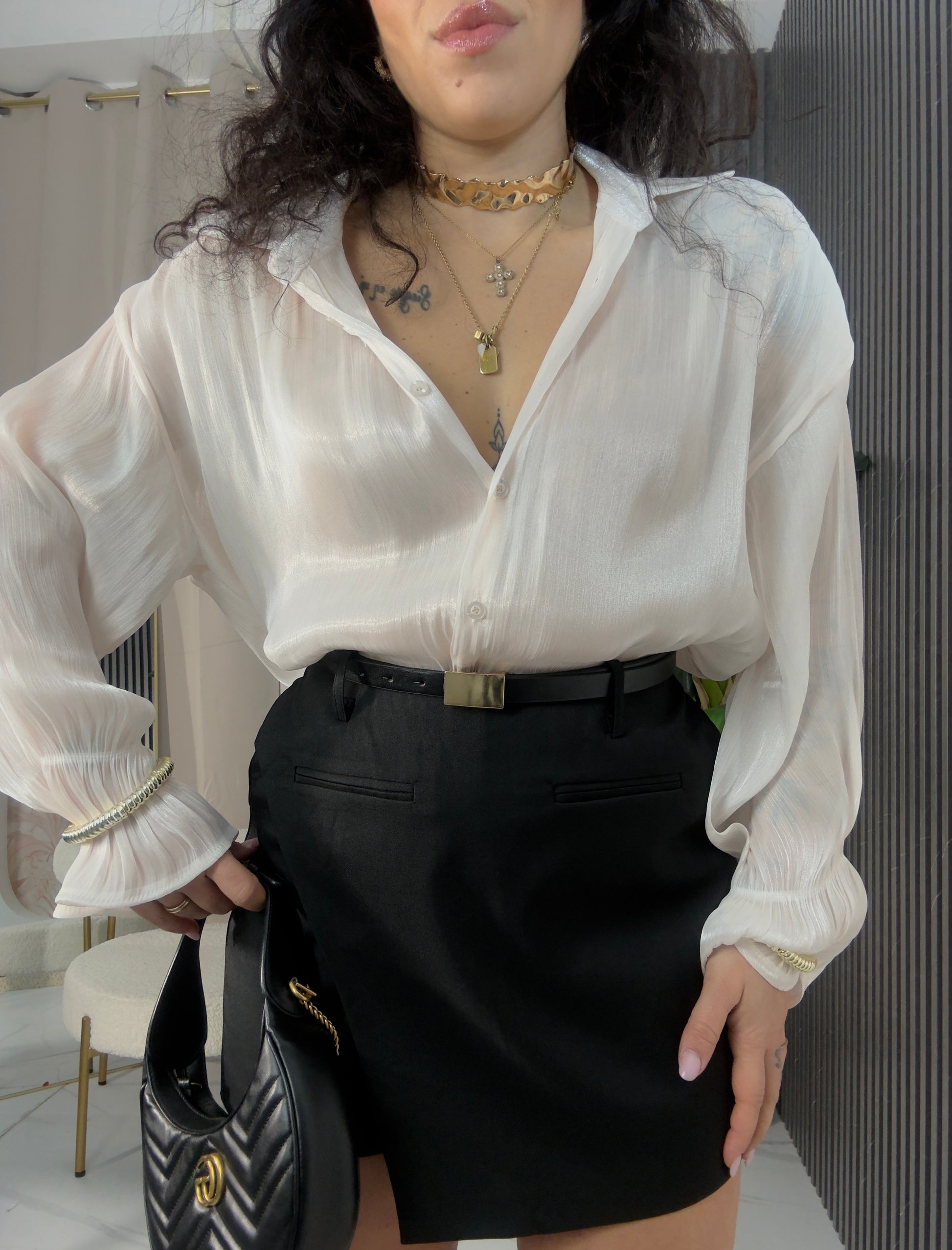 Camicia trasparente in colore rosa chiaro modello morbido e stile casual chic in taglia unica.