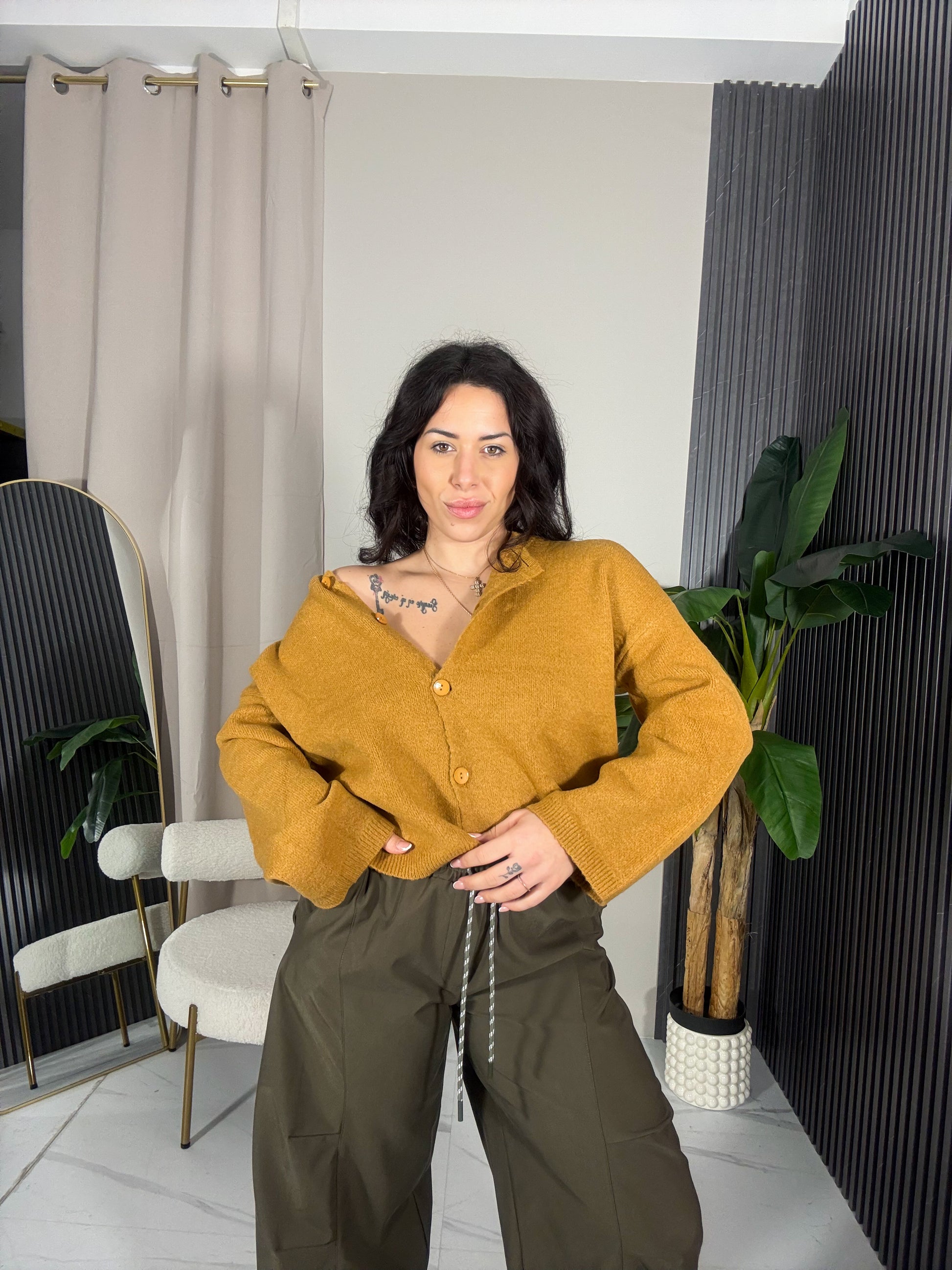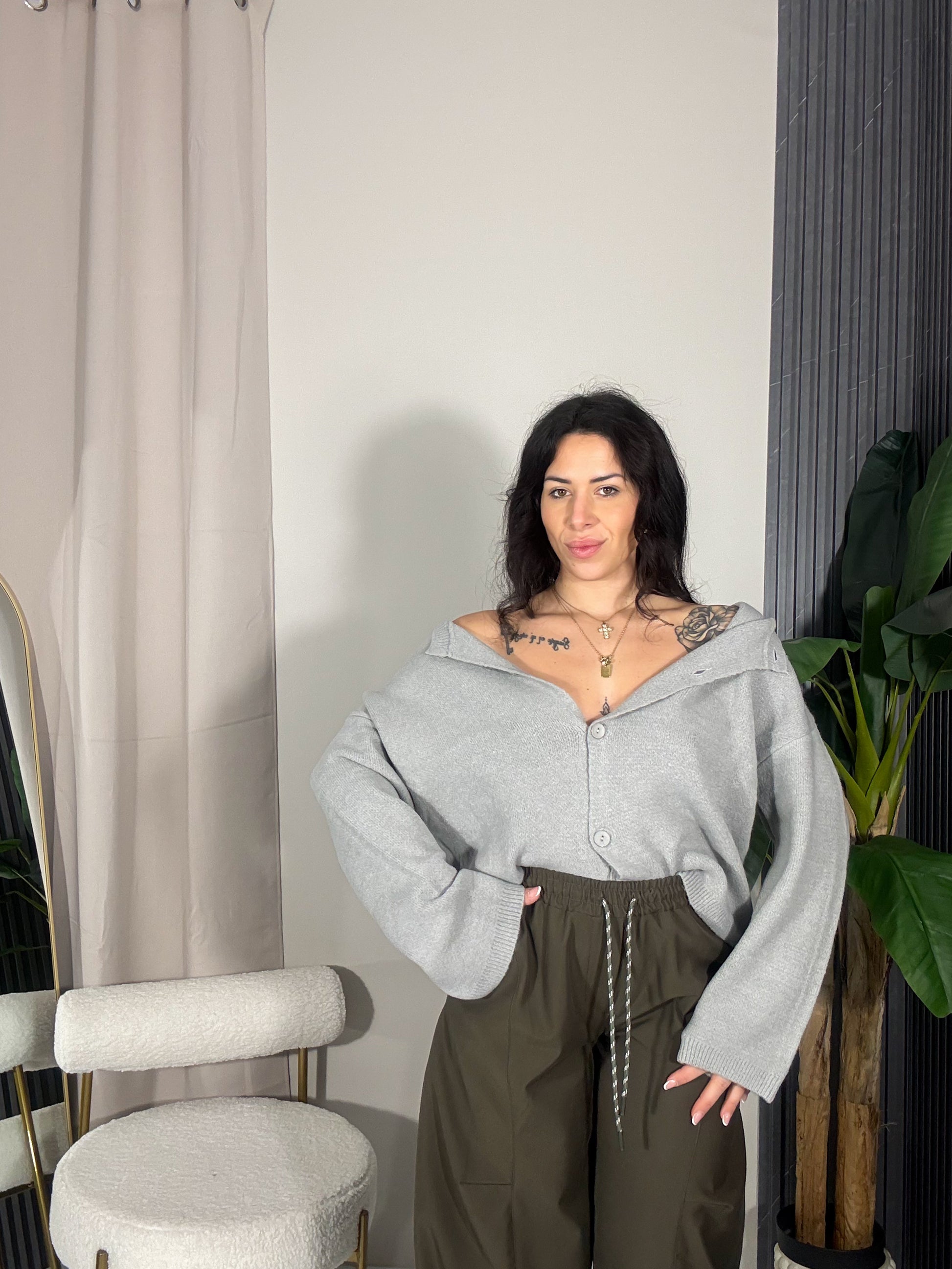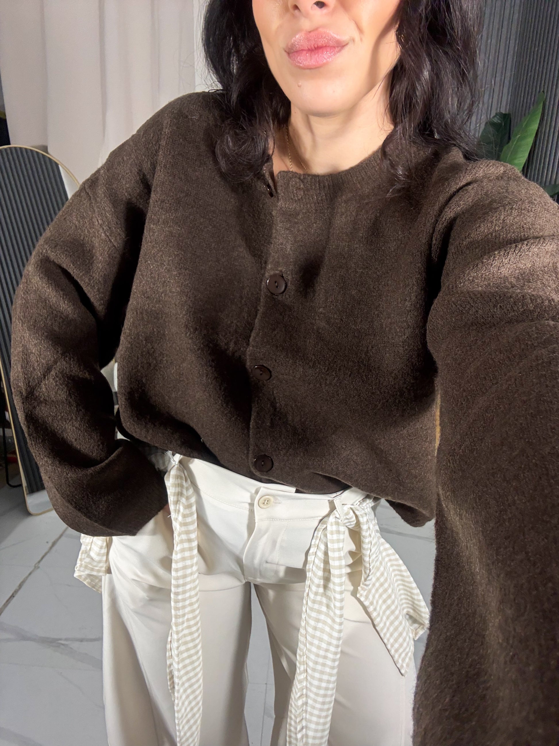 Cardigan morbido con bottoni sul davanti.