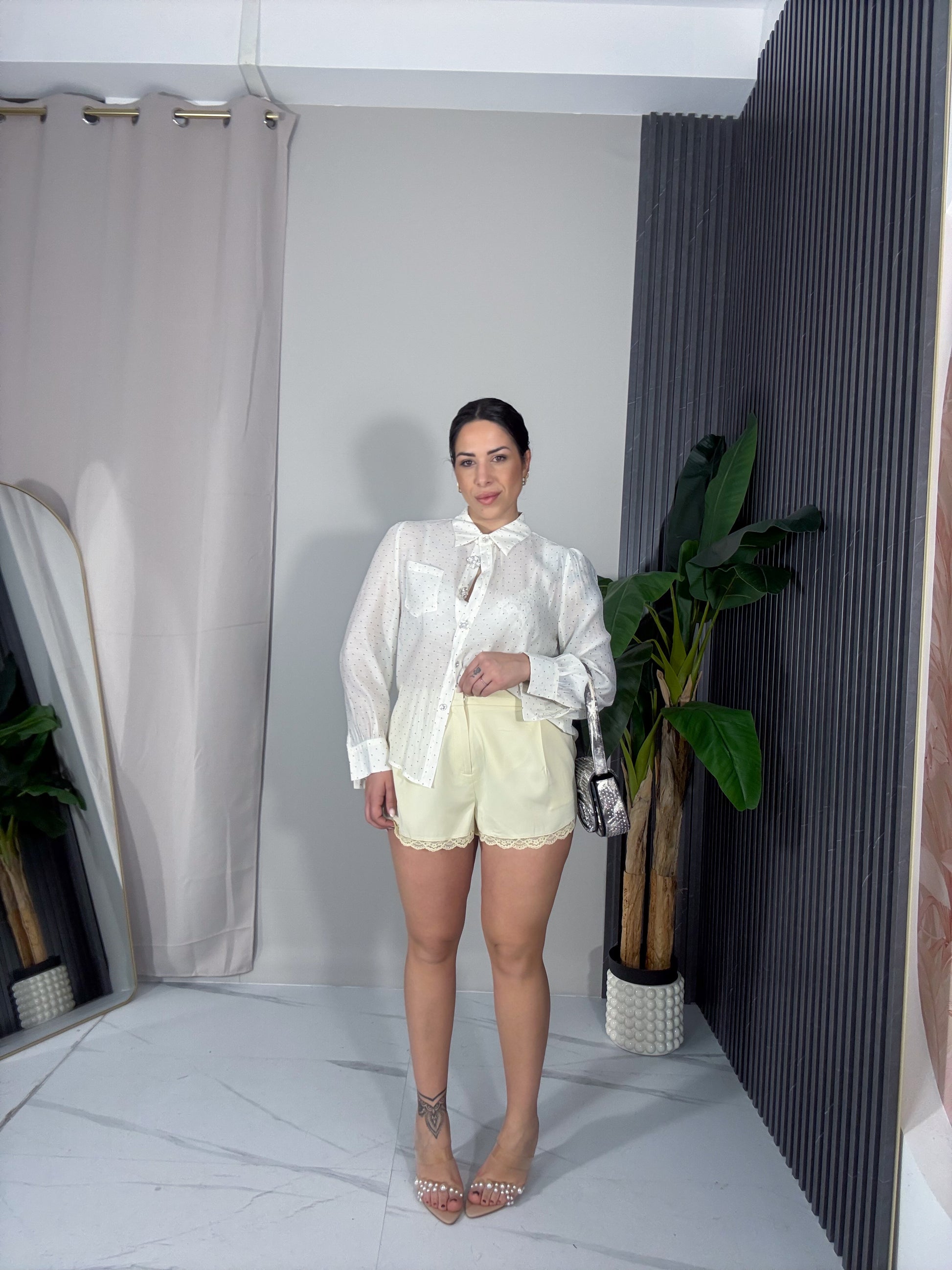 Pantaloncino corto morbido in raso con pizzo disponibile in taglia S, M, L .