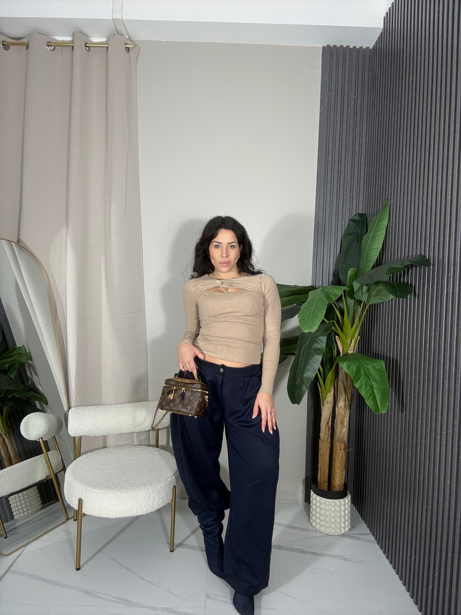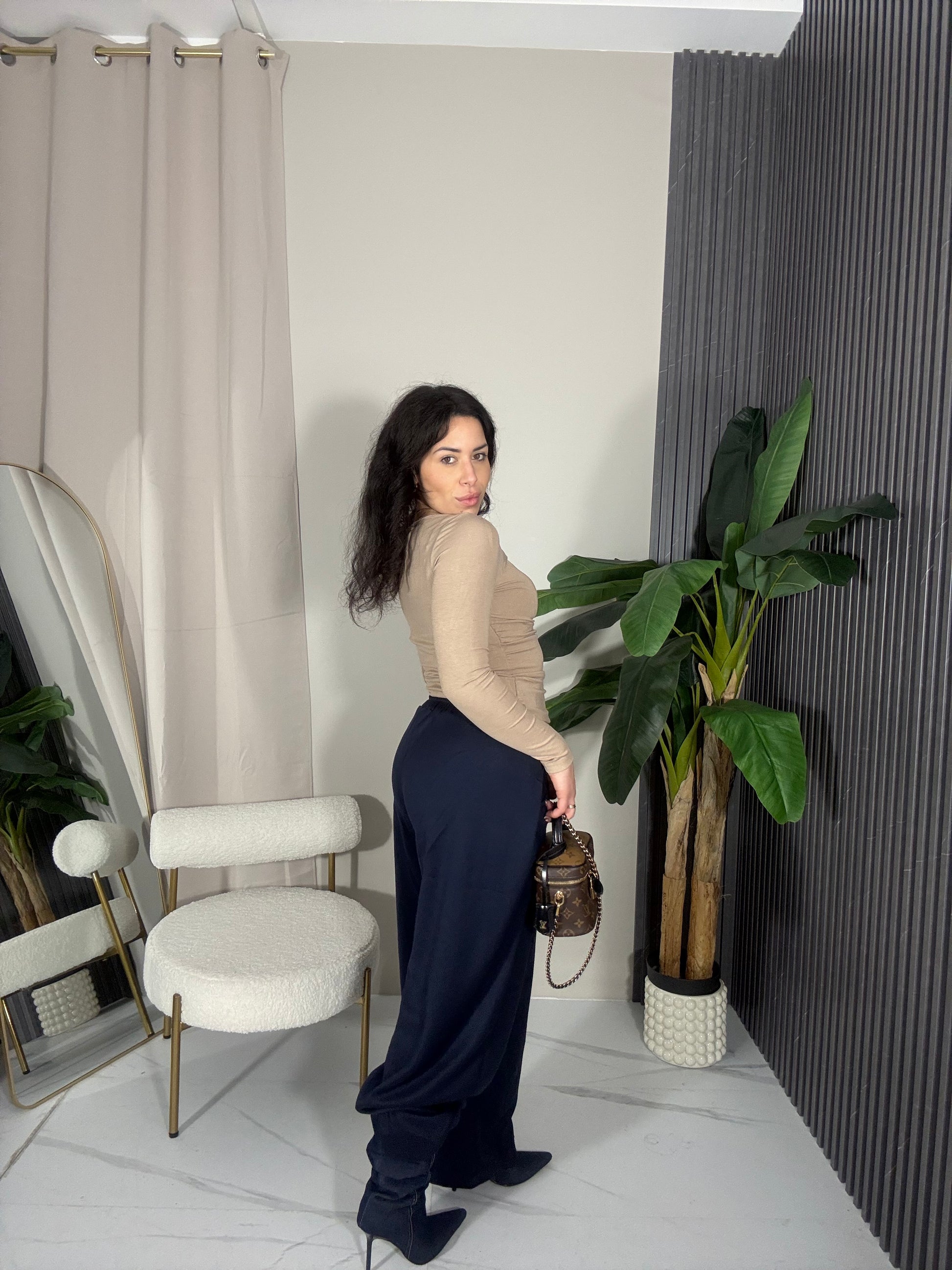 Pantalone balloon con bottone ed elastico in vita