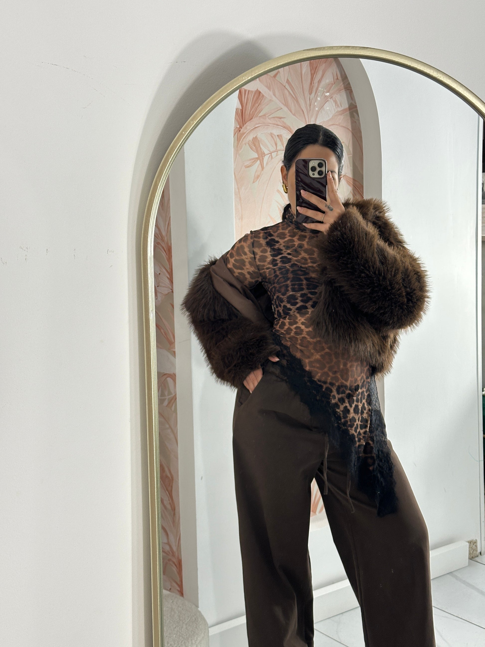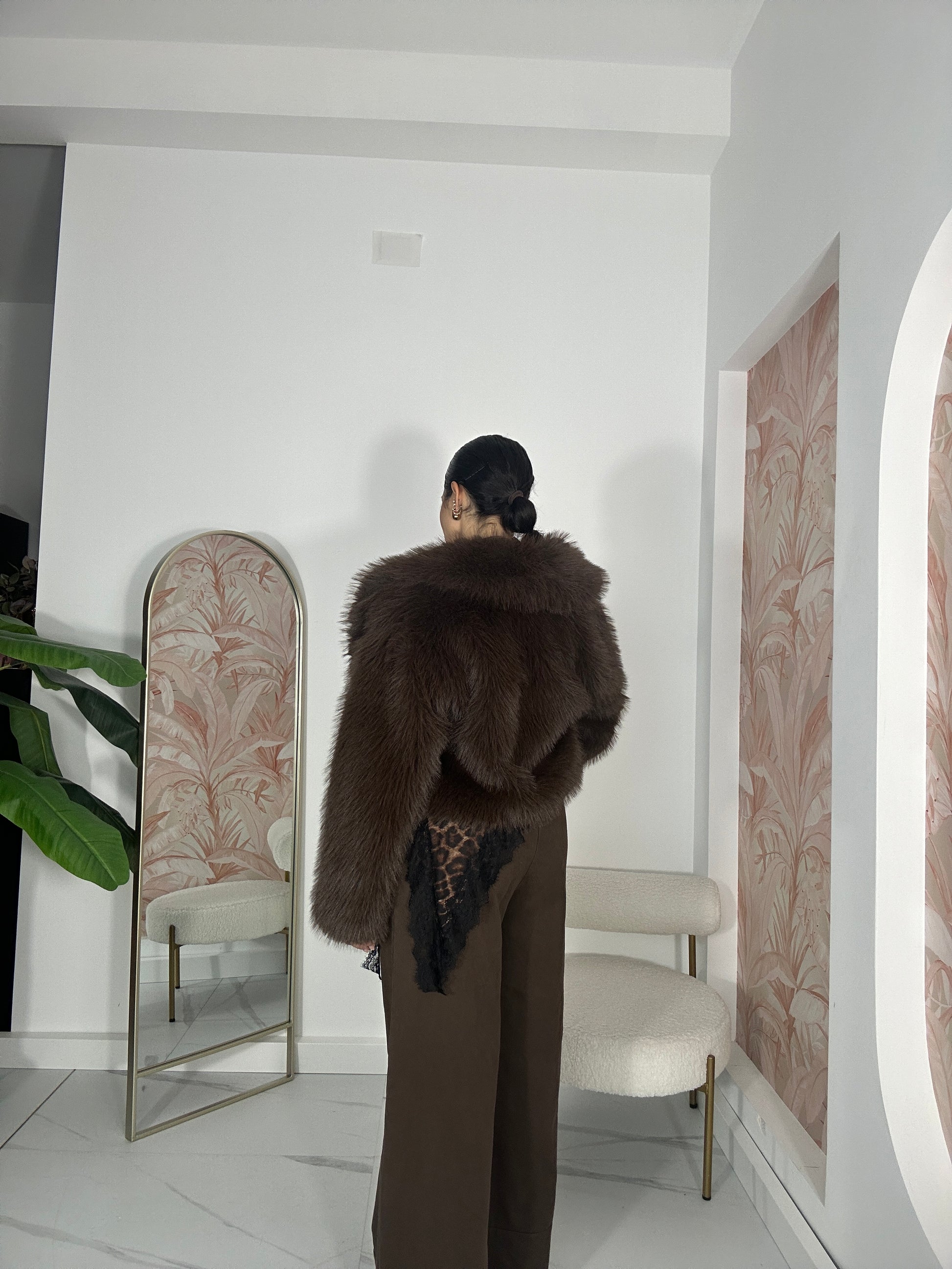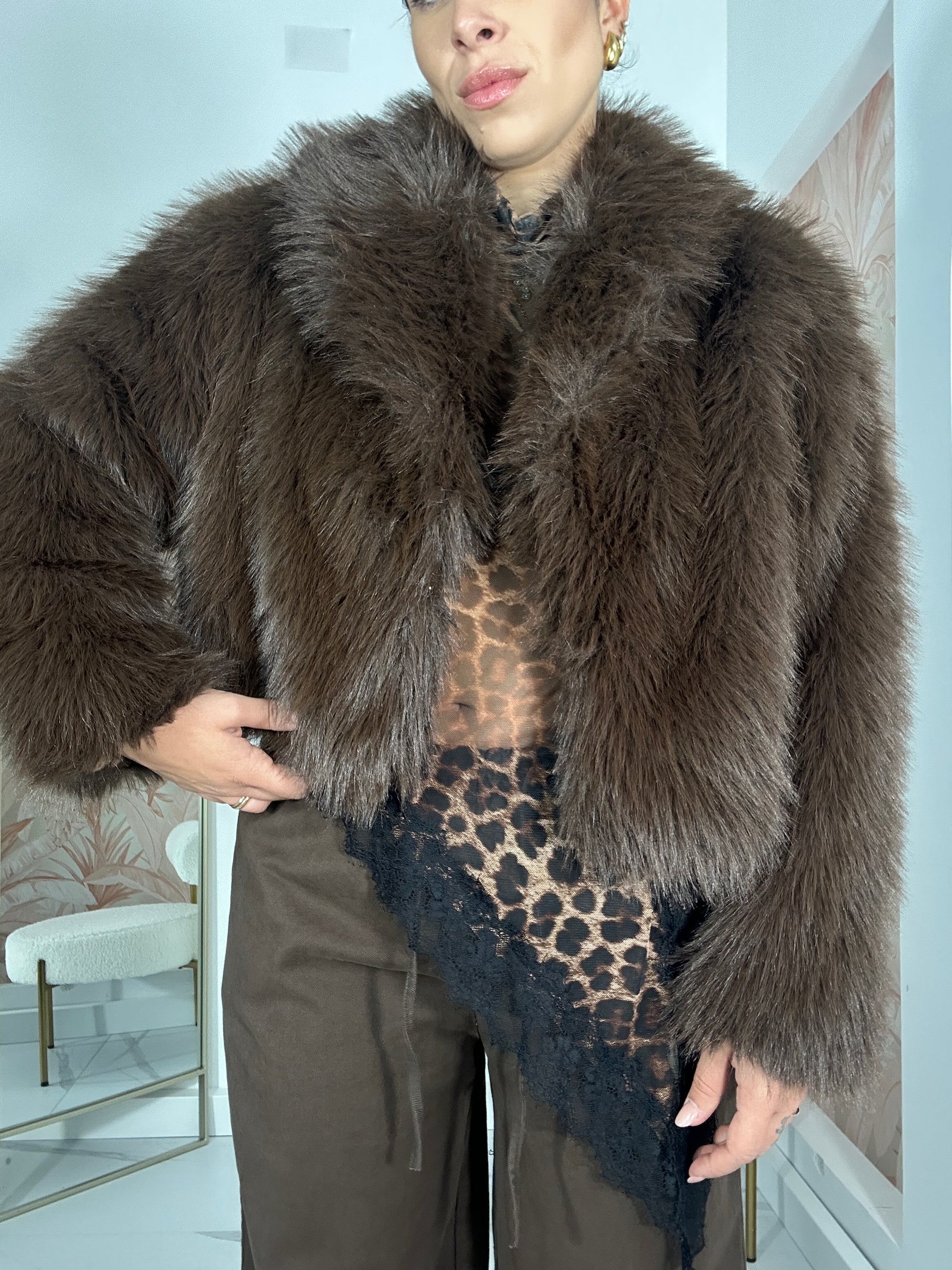 # Giacca di Pelliccia Sintetica - Taglia Unica - Nera e Marrone