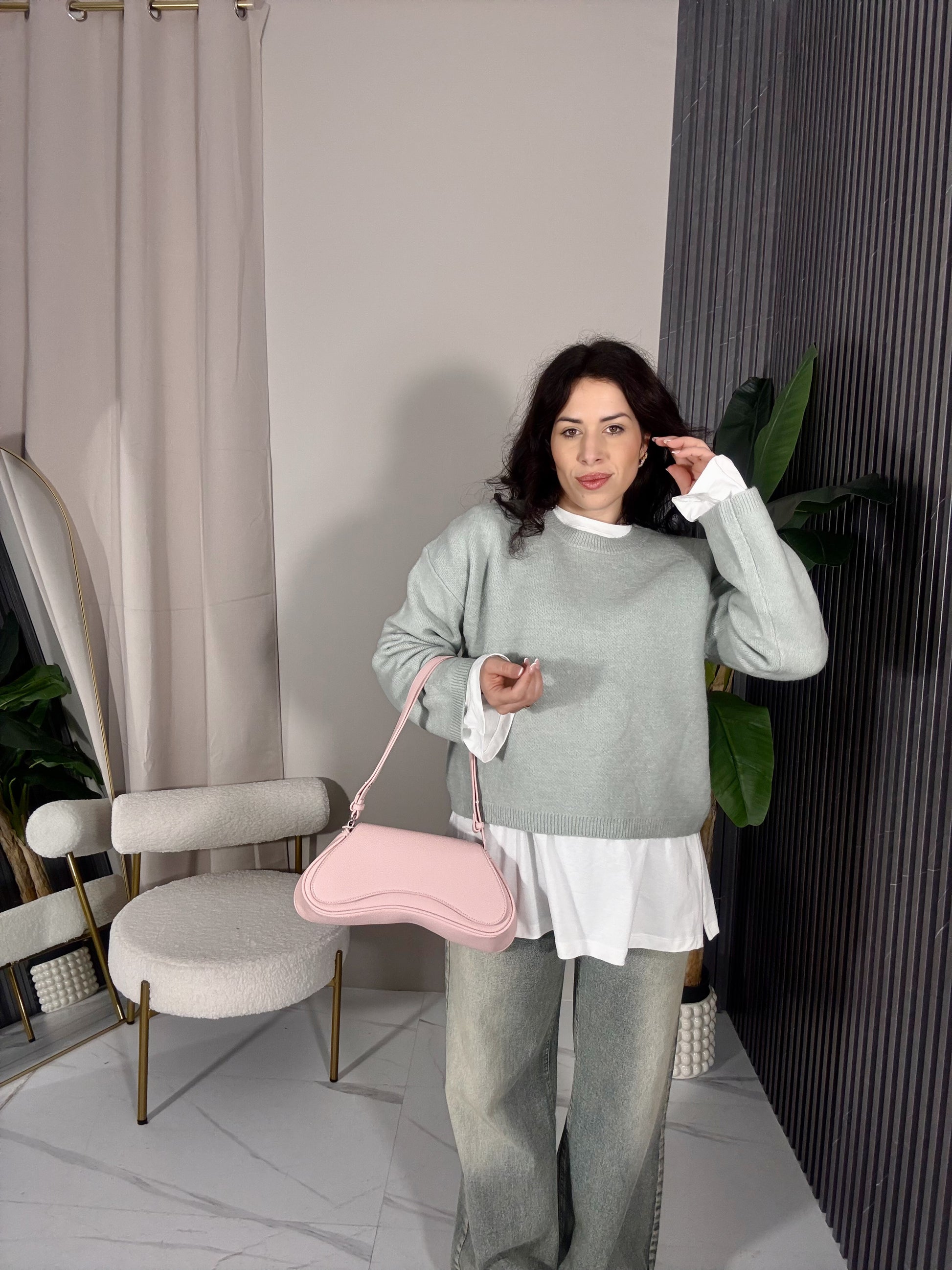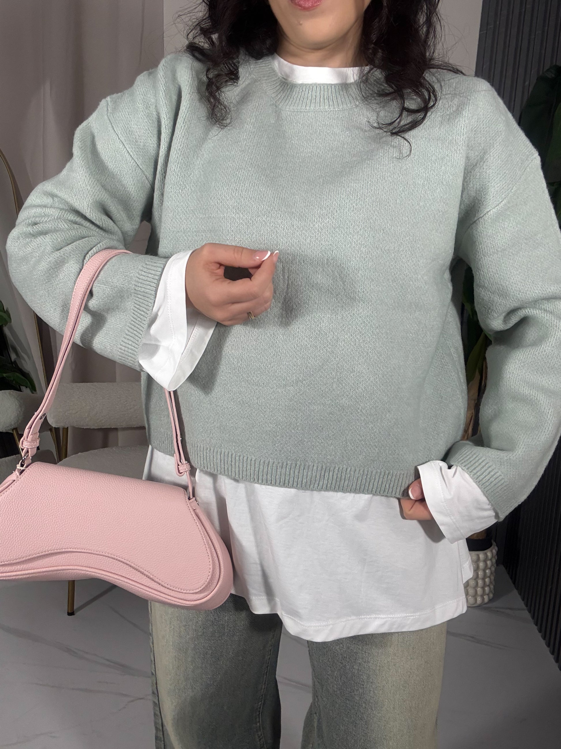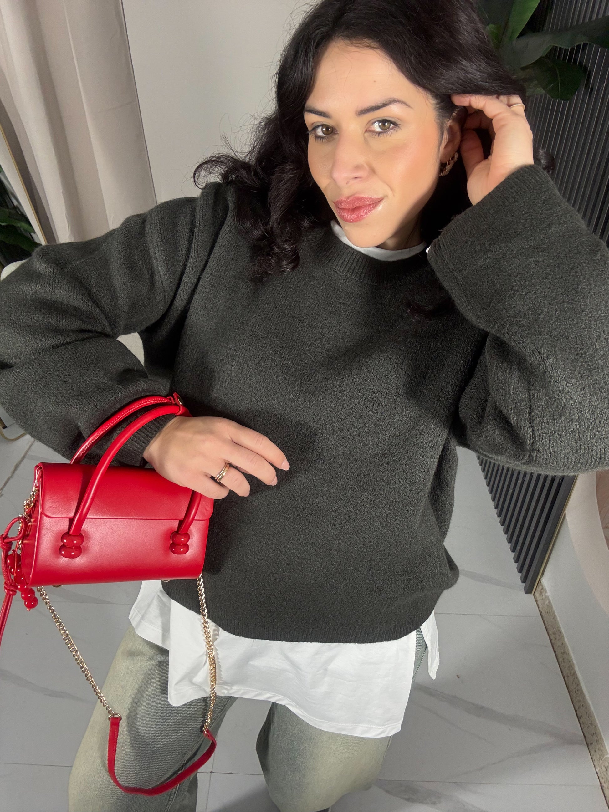 Pullover Isabel con manica lunga morbida. Il tessuto caldo e soffice. Veste da una taglia Xs ad una taglia xl.