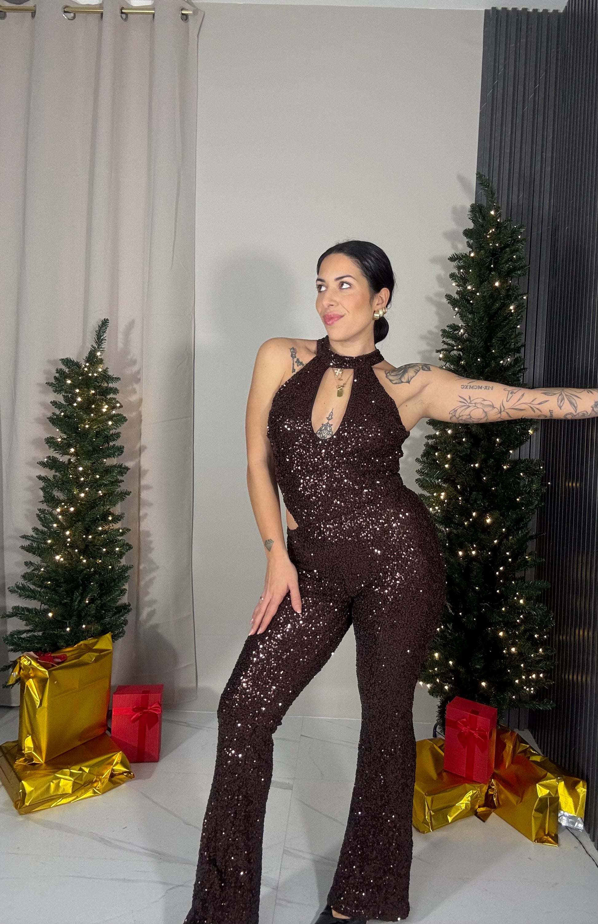 la tuta è elasticizzata con allacciatura dietro il collo con bottoncini.
